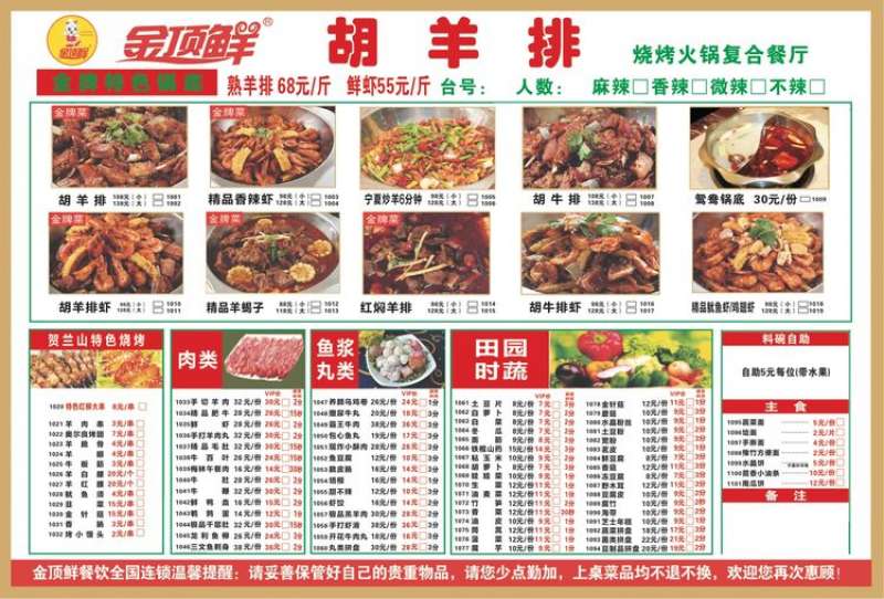 金頂鮮寧夏特色系列胡羊排燒烤火鍋復(fù)合餐廳
